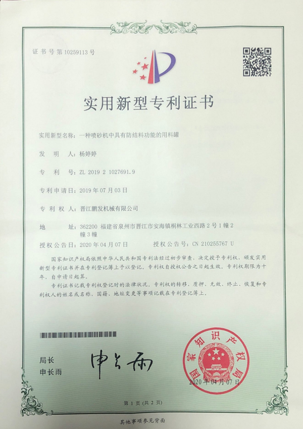 鵬發機械2020年11月通過福建省高新技術企業,2020年12月通過國家高新技術企業,且榮獲22年度科技小巨人企業,獲23年創新型中小企業等榮譽